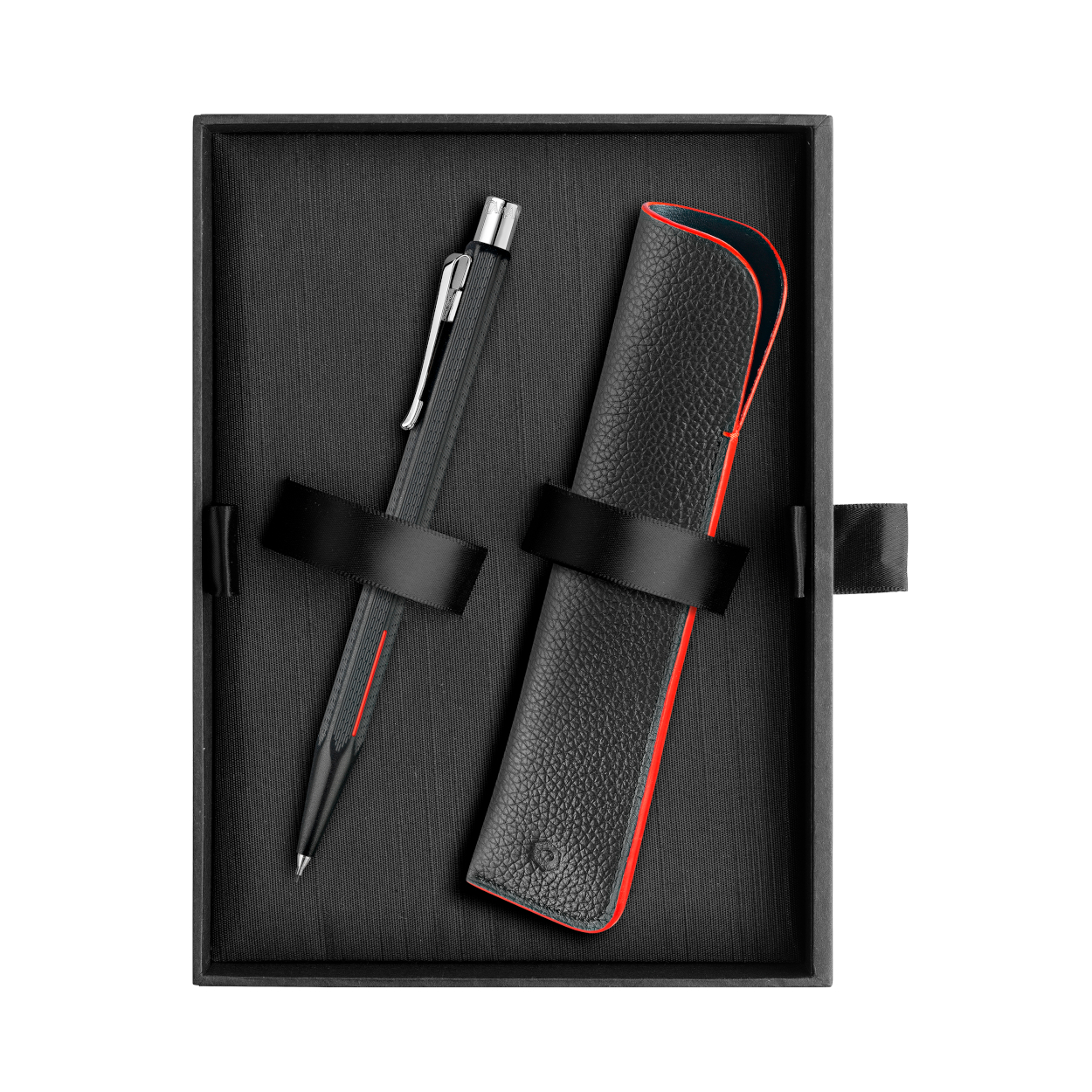 Le nouvel Ecridor Racing affirme ses gènes issus de la compétition automobile:carrosserie du stylo noir mat profond décorée d’une gravure inspirée des calandres, attributs profilés palladiés, code rouge intense, jusqu’à la motorisation qui vous transporte au-delà de 600 pages A4.