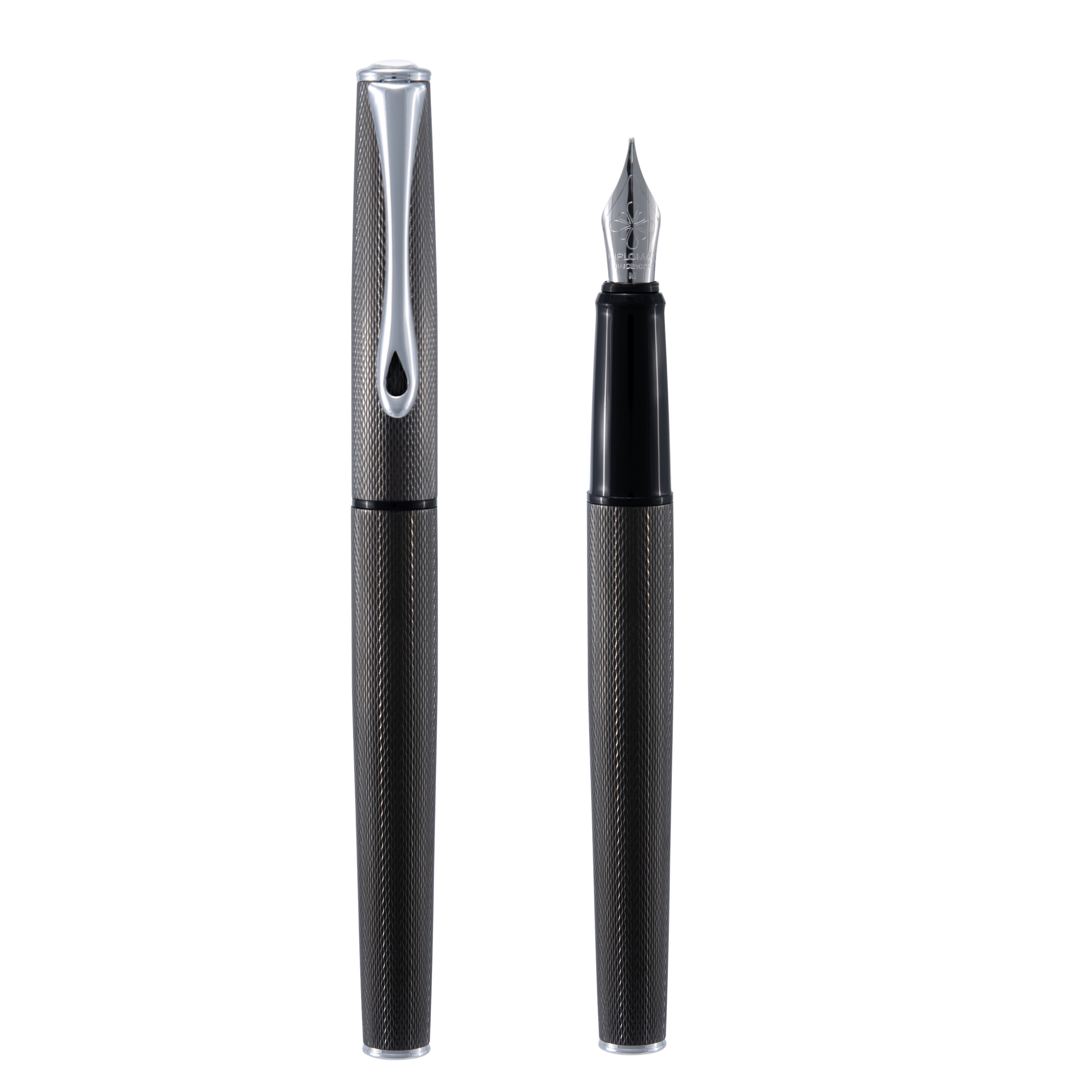 Le corps du stylo est finement guilloché au motif grain d’orge et recouvert d’une couleur gris anthracite, apportant à l’esteem Barley un supplément de raffinement, d’originalité et de modernité.